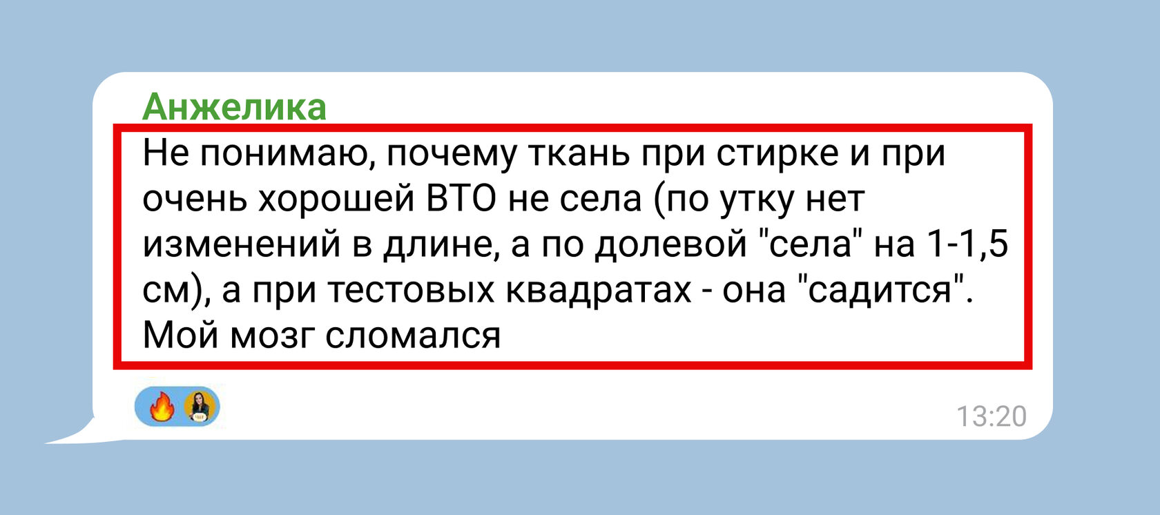 Потратить 15 минут на тест — дешевле, чем выбросить готовую вещь через полгода. Или чем перекраивать детали, потому что после ВТО всё «поплыло».