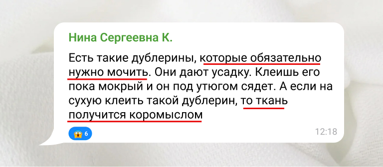 Если дублерин даёт усадку — это чёткий сигнал выбрать более качественный материал.